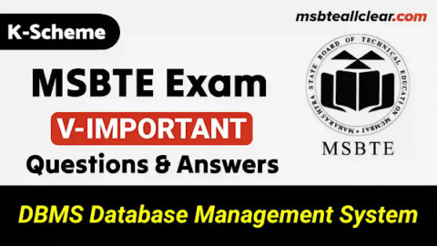 Database Management System - VIMP Question Answer for MSBTE Exam MSBTE K Scheme: 312302 Database Management System Important Questions MSBTE K Scheme: 312302 Database Management System Important Questions with Answers